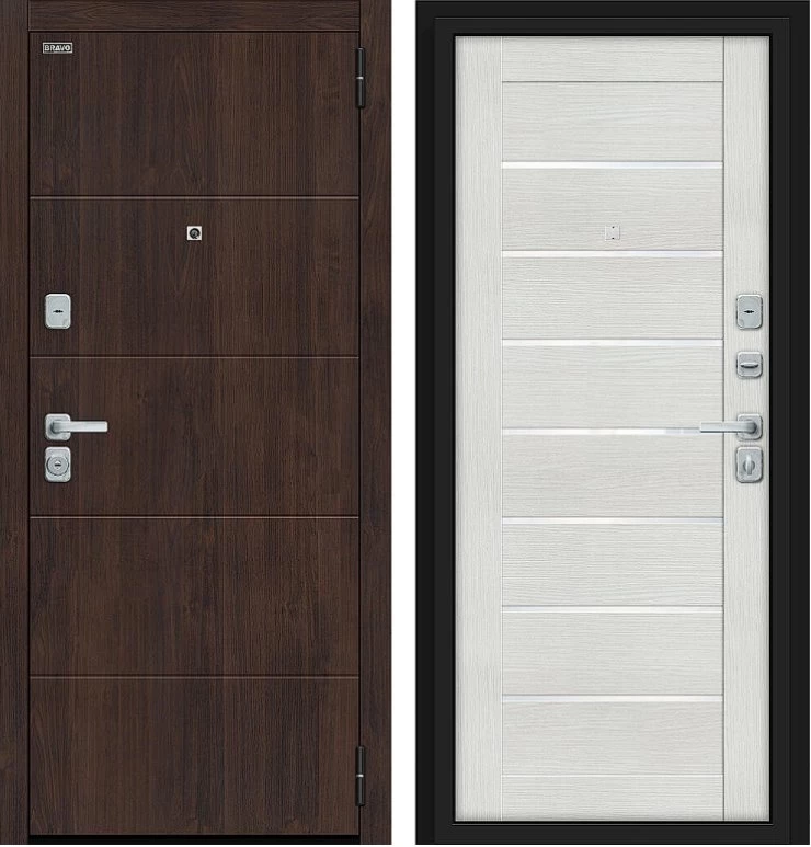 Надежная входная Дверь Браво Прайм/BChrome Almon/Bianco Melinga премиум класса по цене 39 567 руб. Большая толщина стали защитит от проникновения в ваш дом, квартиру или коттедж. Используется очень качественная фурнитура: замки, цилиндры, ручки, защелки. Покрытие и отделка двери изготовлено под внимательным контролем производителя. Дверь имеет долгий срок службы и гарантию.